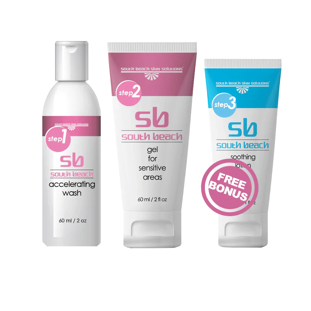 Solución específica: El gel para áreas sensibles de South Beach Skin Solutions® disminuye eficazmente las manchas oscuras o descoloridas en áreas íntimas como la región del bikini, las axilas y las áreas anal y vaginal.