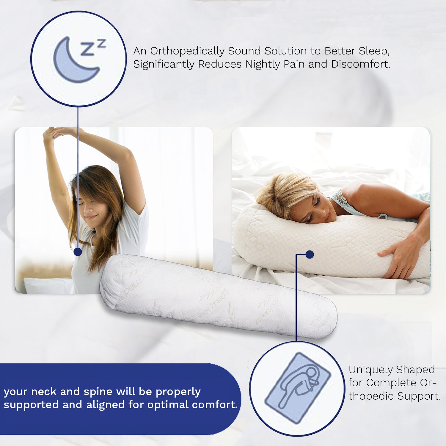 Experience unmatched comfort and body alignment with our Ergonomic Full Body Pillow, designed especially for side sleepers and anyone seeking full-body relief. Crafted with organic spiral latex, it naturally contours to your body, easing tension from head to toe. The luxurious bamboo cover is soft, hypoallergenic, and antimicrobial, keeping your sleep environment fresh and clean every night.
